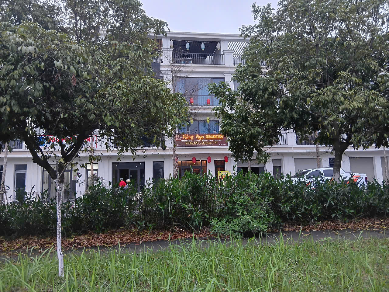 Row of trees in front of homestay