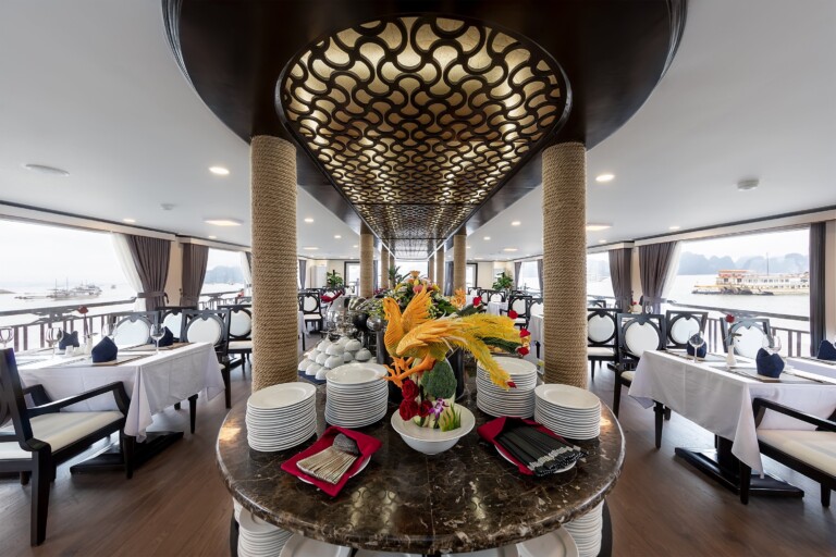 Sau đó quý khách dùng bữa trưa trên Du Thuyền giữa mênh mông biển nước, đem lại một cảm giác rất thú vị. Vừa thưởng thức những món ăn mang hương sắc của biển cả quý khách vừa có thể thưởng lãm những cảnh quan thiên nhiên hùng vĩ của vịnh Hạ long như: Hòn Đinh Hương, Gà Chọi, Chó Đá …